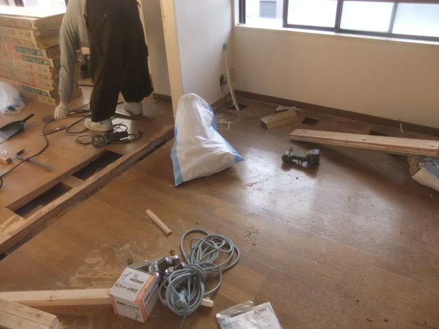 解体和室下地組コンパネ捨て貼り工事