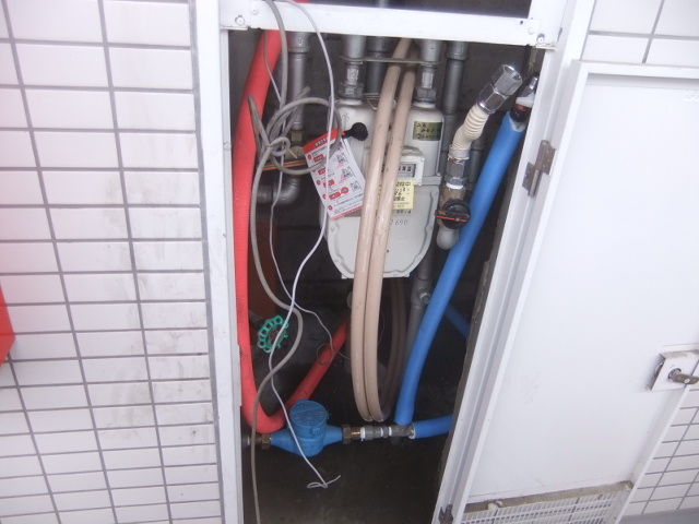 水廻り全面交換リフォームで、はずは、水道メーターからの給水・給湯配管を全て架橋ポリ管に交換での更新です。