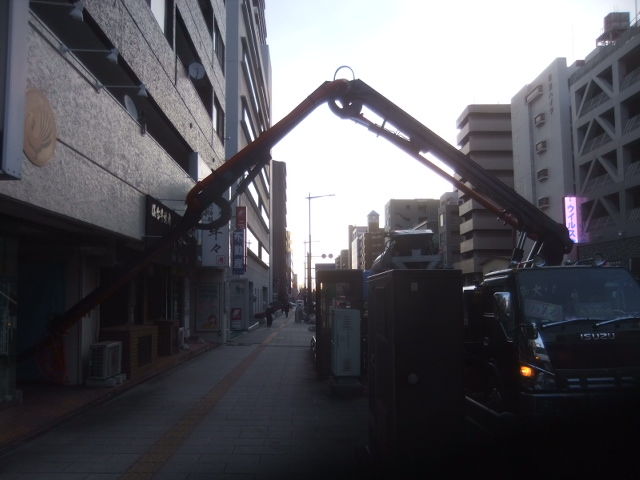 コンクリート打設生コン、圧送車スタンバイ