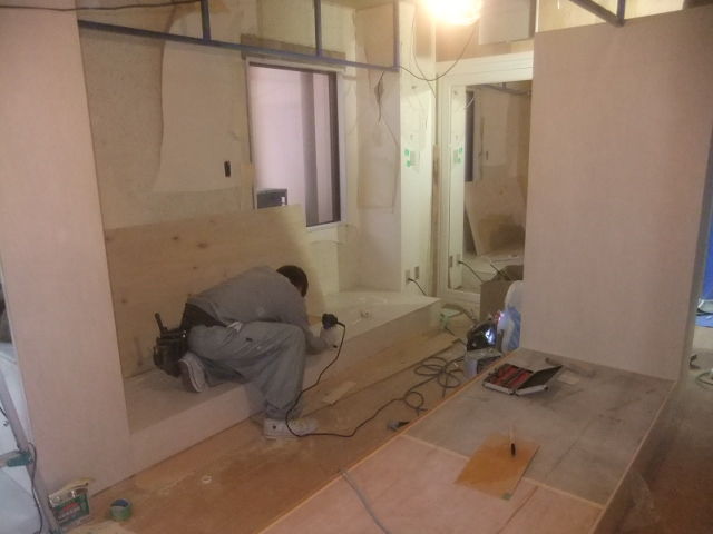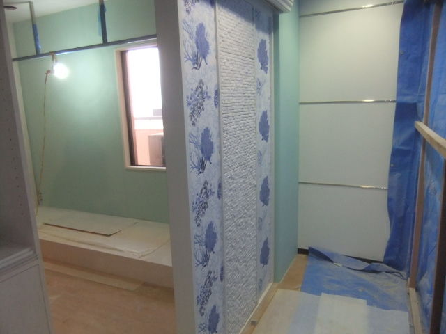 システムキッチン交換工事、ユニットバス交換工事、仕上げ巾木設置工事、カーテンレール交換工事、ユニットバス廻り造作工事、追い炊きフルオートの給湯器交換工事、全面塗装(ベランダ、木部、玄関廻り鉄部)工事、MDF全面巾木設置工事等での大詰めでの集中リフォーム継続中です。