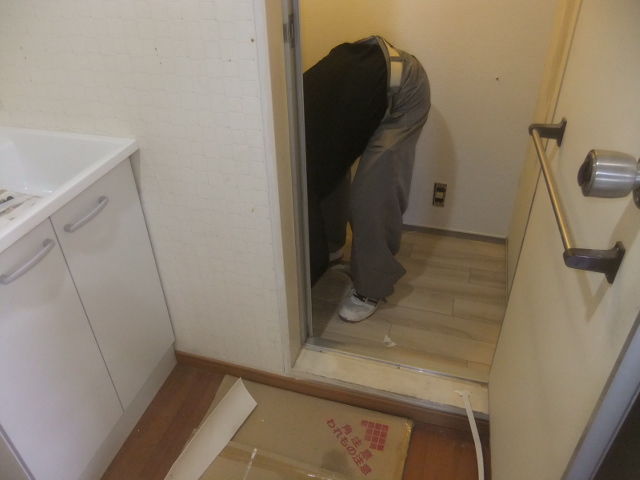 本日から内装工事で、トイレブース・洗面・脱衣所ブースで干渉する部分を先行してのトイレ、洗面化粧台、洗濯防水パンと洗濯水栓の交換工事です。