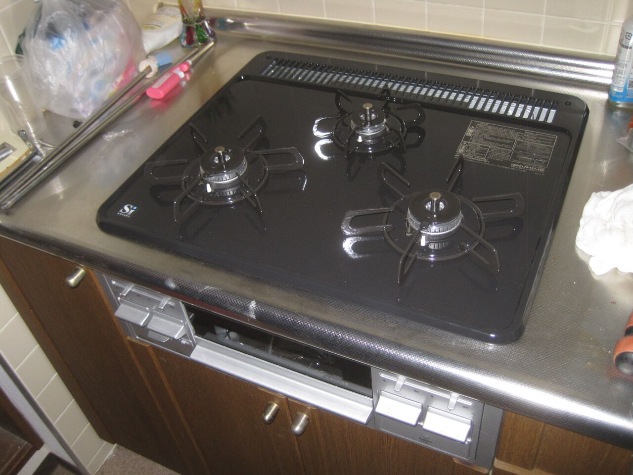 キッチンは既存のシステムキッチンを生かして、シャワー水栓交換、スリムレンジフード交換、オール電化でのIHコンロ交換です。