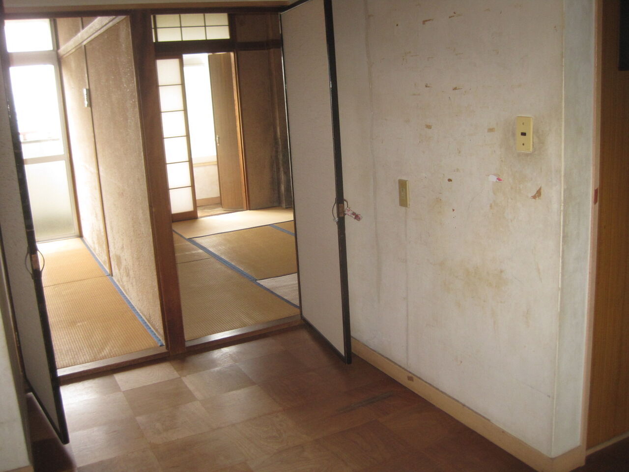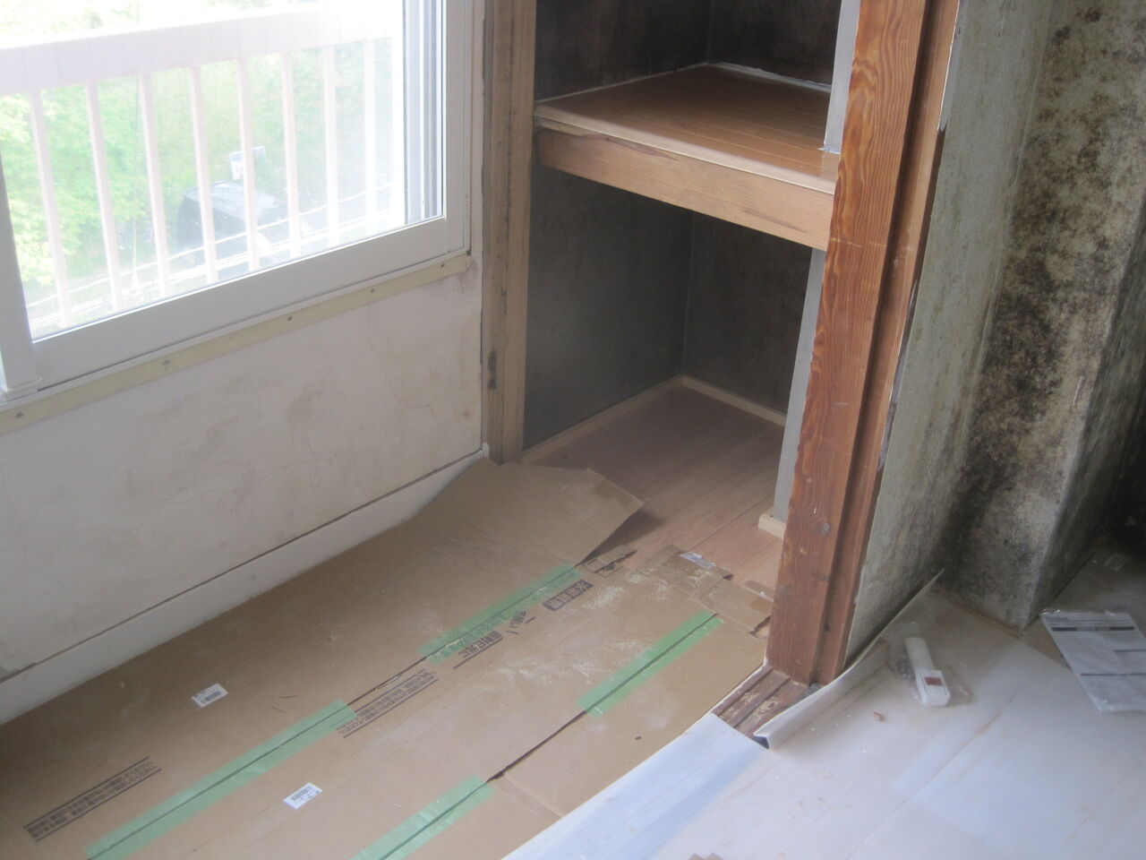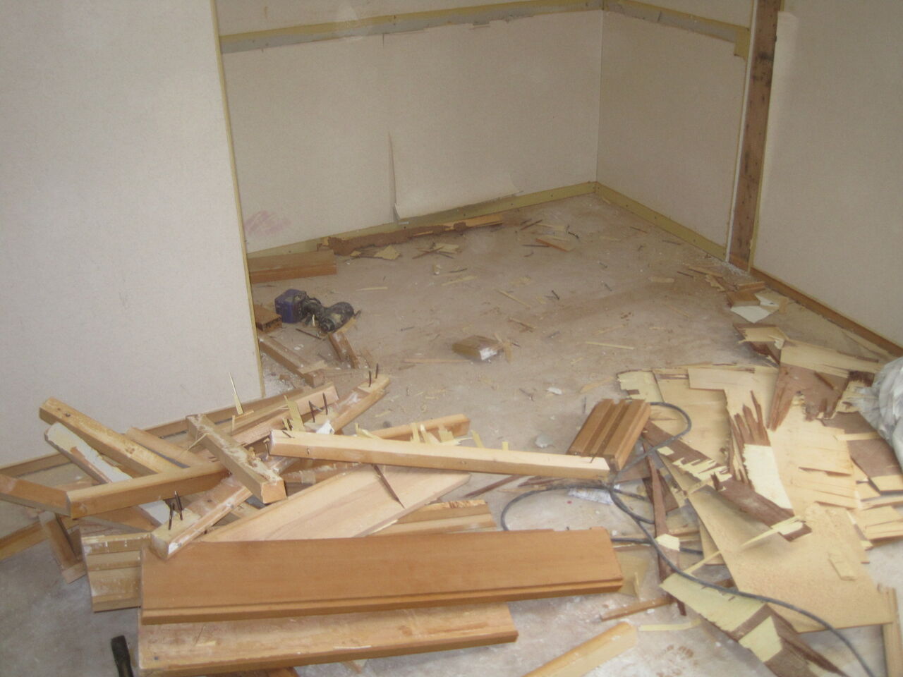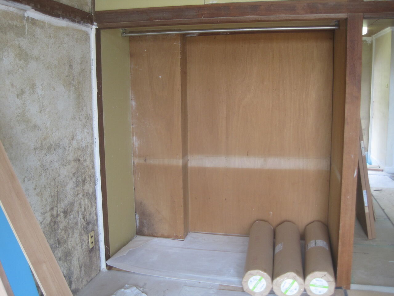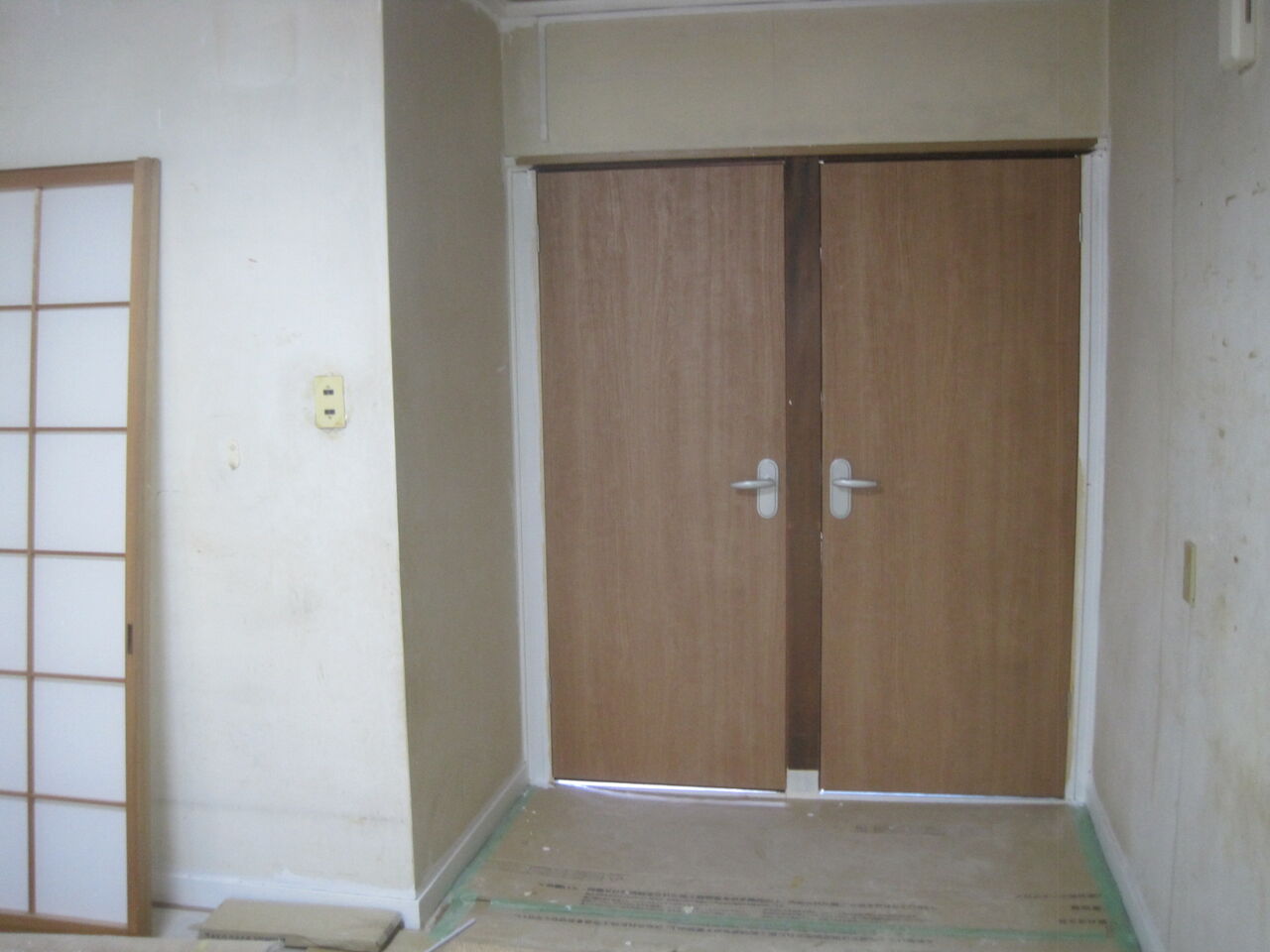 畳撤去で、既存押入れ、入口ドアを解体撤去いたしました。