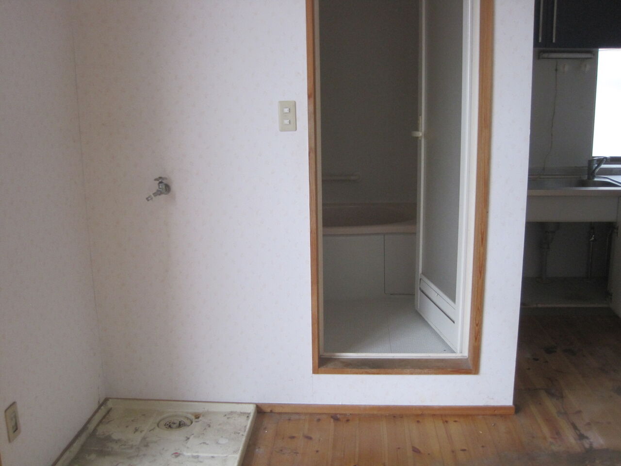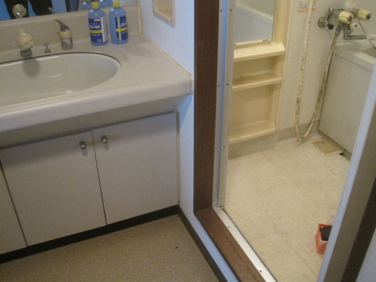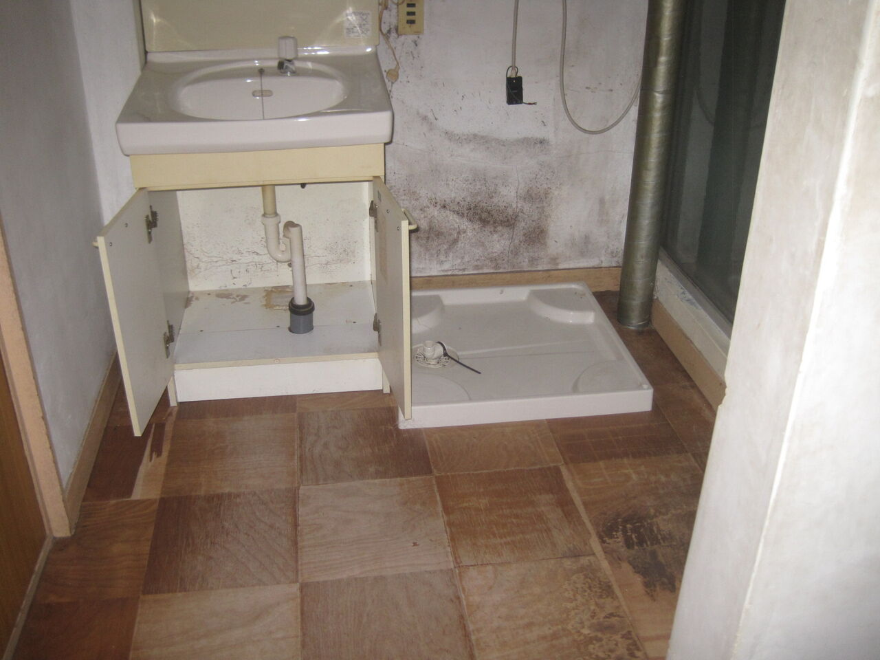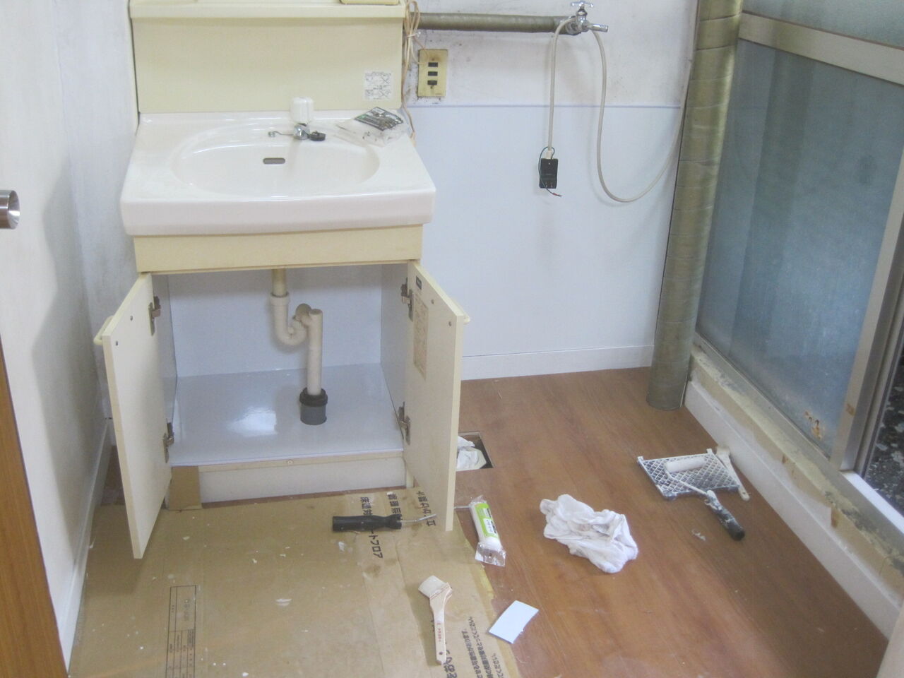 既存浴室の解体で、新たなユニットバスの入口ドアを広くして、干渉する洗面化粧台も解体いたしました。