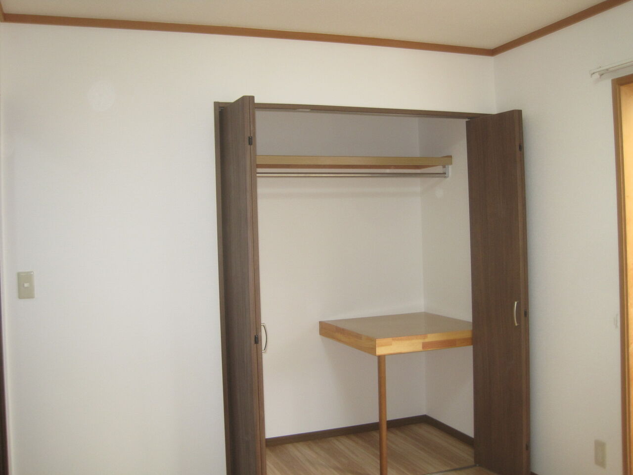 広い押入にもダイレクトレールでのLED照明とコンセント、ロングハンガーパイプを取付で押入れだけでなく作業スペースとして活用できます。