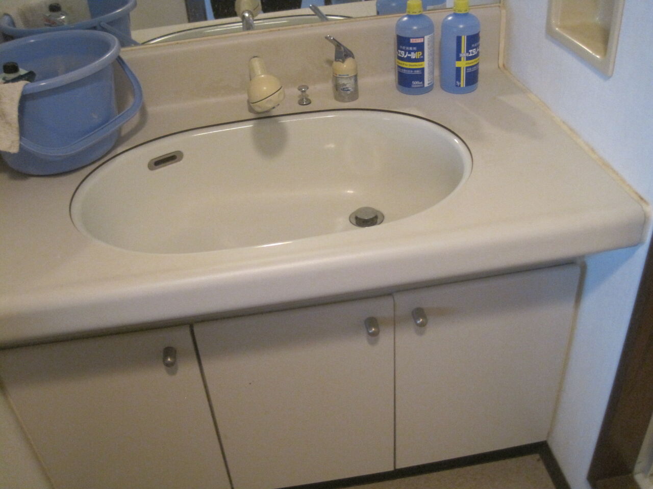 洗面化粧台は既存100cmから75cmに変えて隙間収納キャビネットを設置いたします。