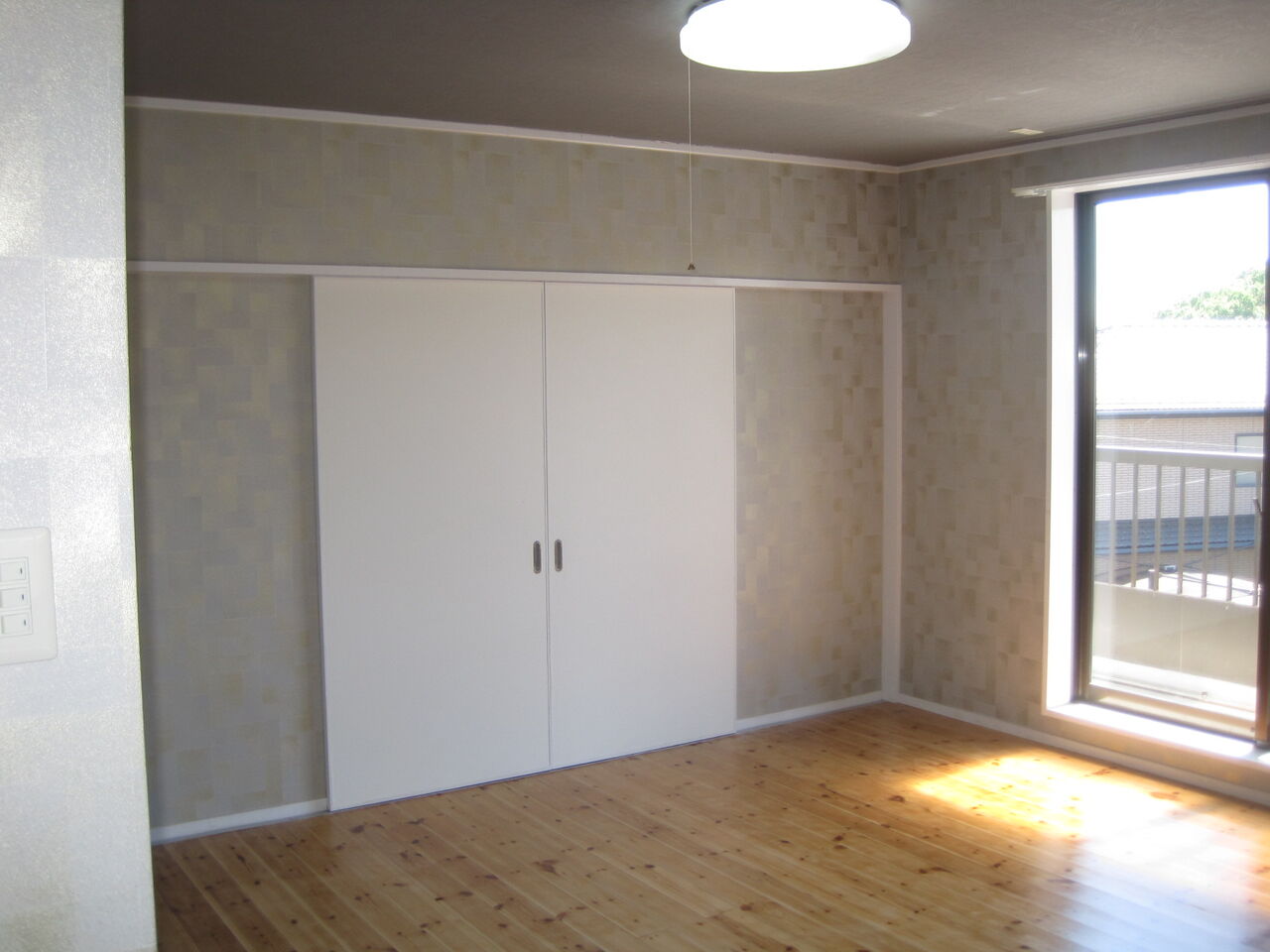 洋室の防音フローリング貼替とクロゼット廻り造作、室内ドア廻り造作でクロス貼替をいたしました。