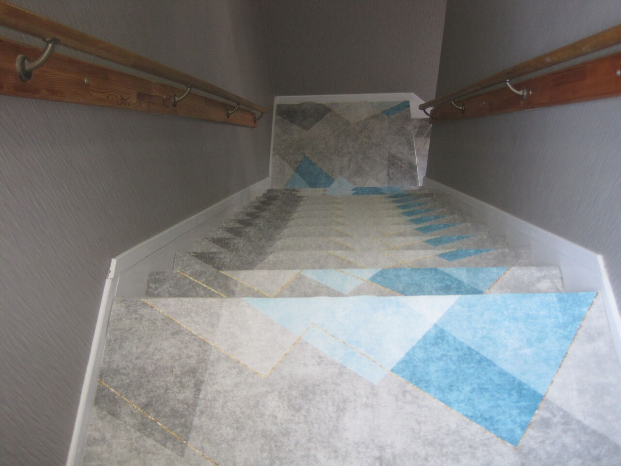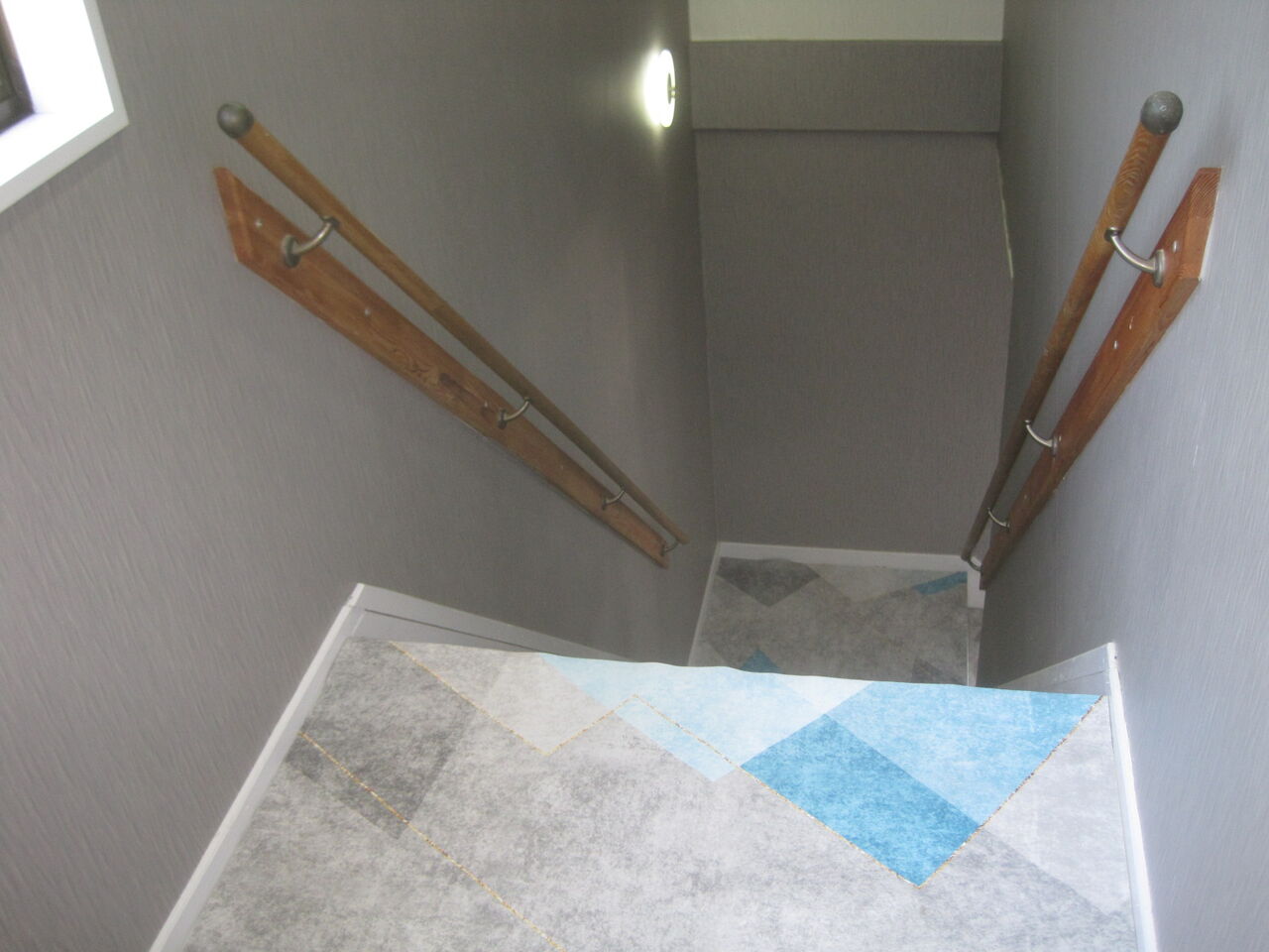 照明も廊下は人感センサー付き、階段は間接照明とダイレクトレールでのブラケット照明です。