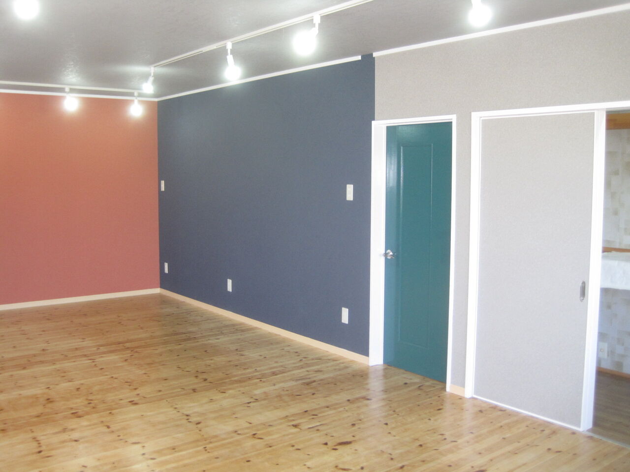 照明はダイレクトレール設置でLEDスポット電球とダイレクトレール活用でのコンセント増設とピクチャーレールにいたします。
