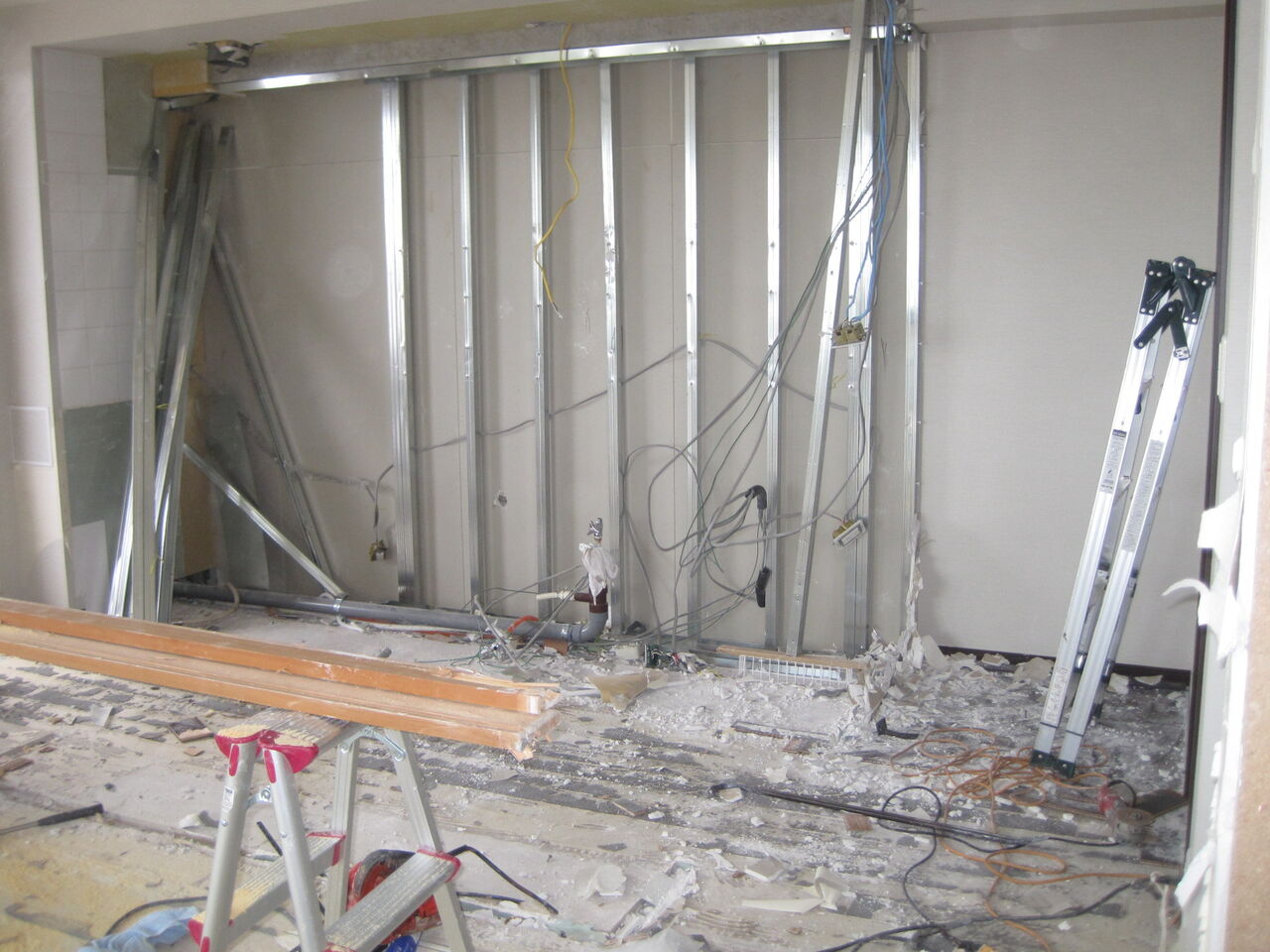先ずは、このリフォーム着工のタイミングで必要が無い、既存のタンス、棚、テーブル、机等の家具とパソコン、家電等の処分をいたしました。