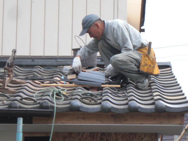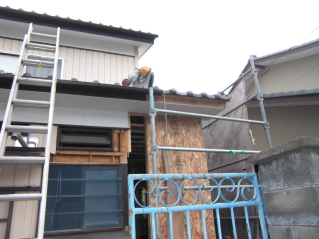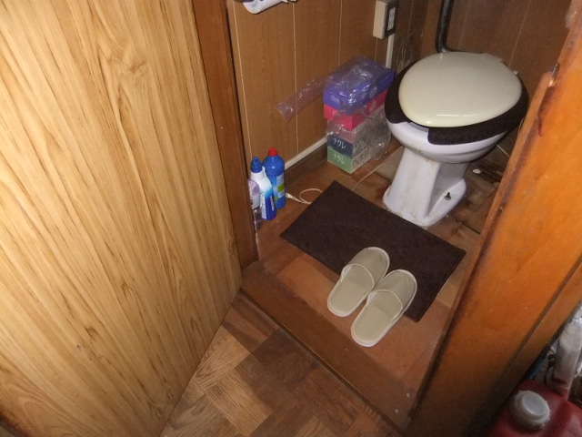 トイレ室の拡幅壁・瓦屋根の工事が終わりましたので、既設の壁を解体いたしまして、設備工事に入りました、なるべくトイレが使えない期間を最小限にいたします。