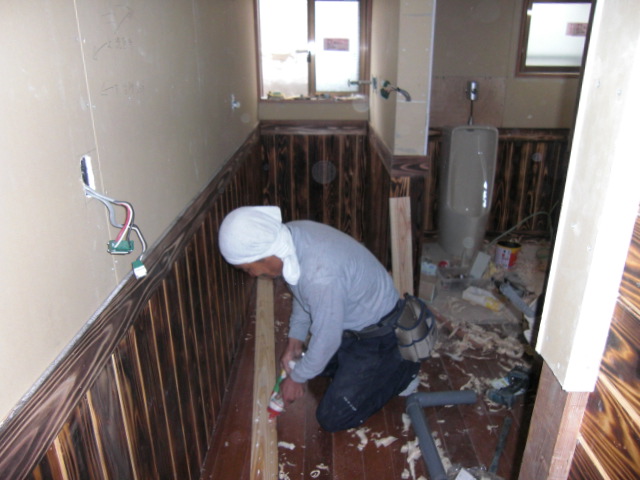 腰壁の焼き杉は、『あまりハイカラにしないでいいから。』と言うご希望でしたので使いました。