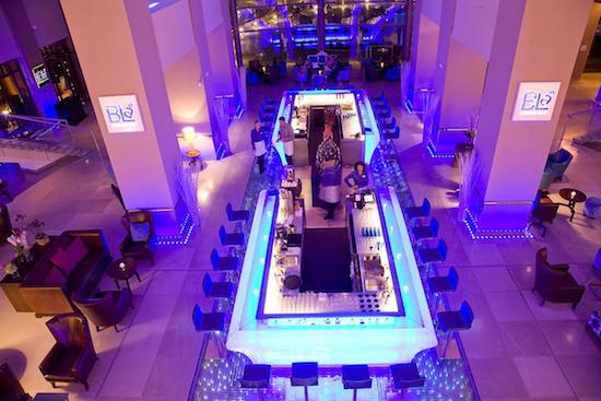 また、ラウンジのライトを暗くすることによって、バーカウンターが芸術的なモニュメントのような空間を創造しています。