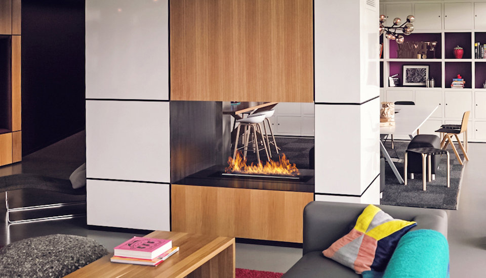 この「バーナータイプ」といわれる容器を壁や家具などに埋め込んでいただき、それぞれのオリジナルな暖炉設計を可能にします。