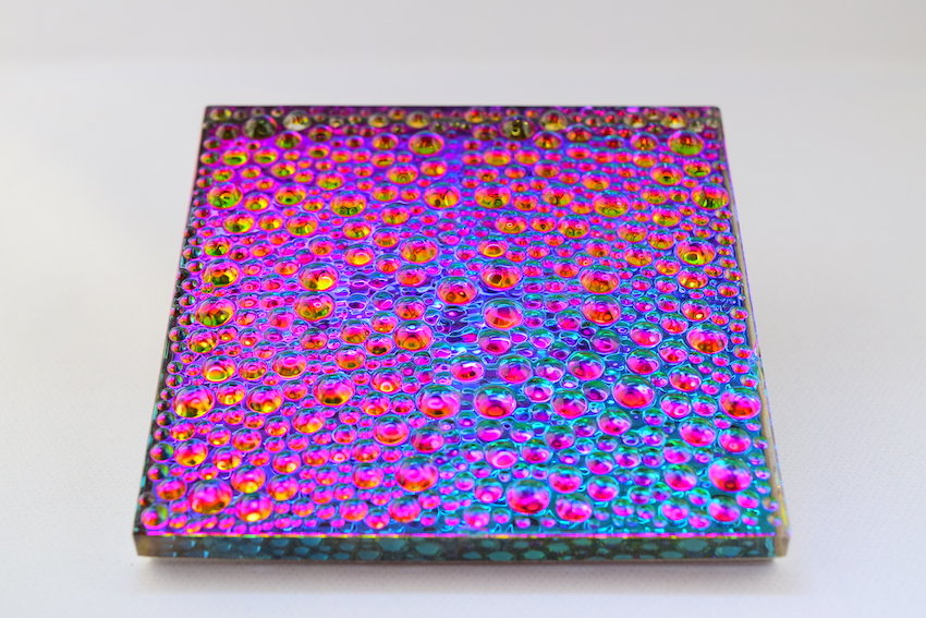 デザイン性の高い装飾柄で、カウンターやテーブルトップ、天井、壁面や照明器具などの家具デザインなど、あらゆる用途に使用でき店舗やパブリックスペースを演出する「装飾アクリルパネル」。