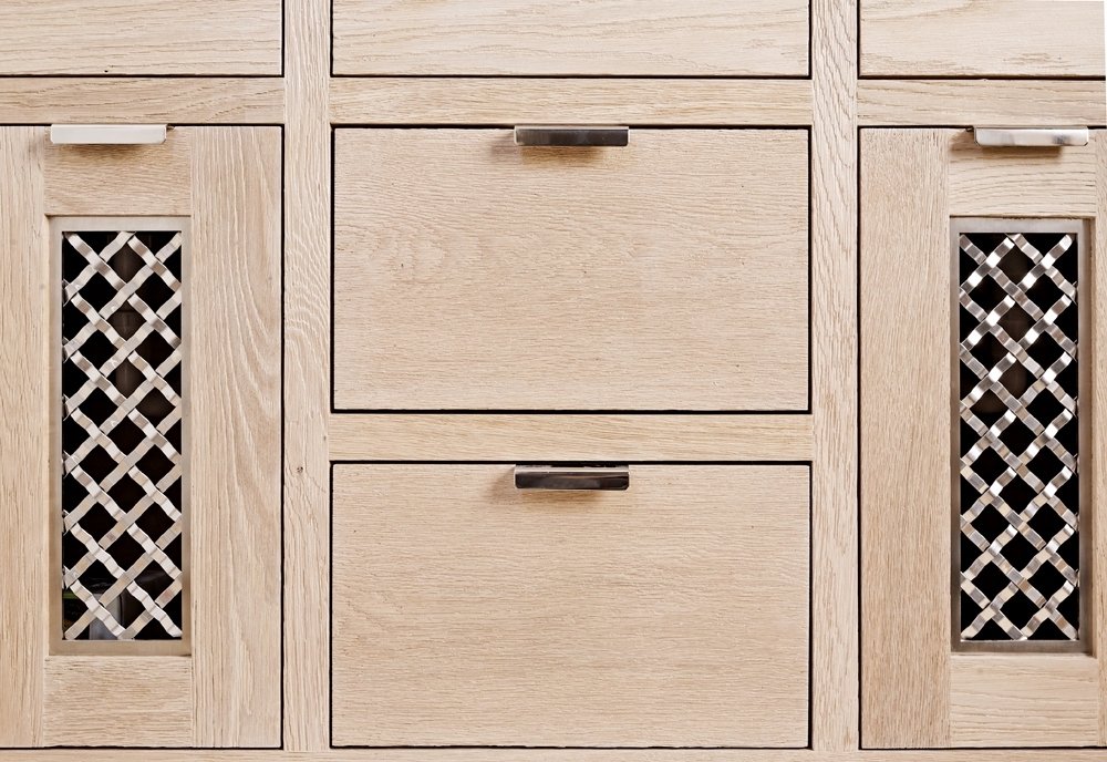 様々なシーンで使用することが可能なメタルメッシュパネルですが、今回は、ディスプレイ什器やキャビネットにメタルメッシュパネルを使用した施工例をいくつかご紹介したいと思います。