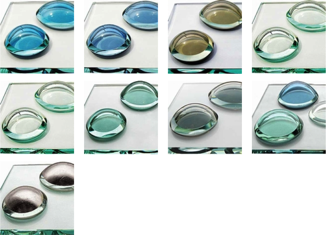 カラーは、ゴールド・リーフ、シルバー、ブロンズ、クリアー、アクア・ブルー、ブルー、グリーン、グレー、マルチの9色をご用意しています。