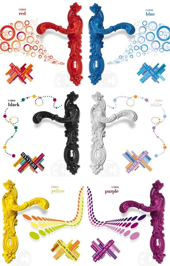 伝統的なデザインとビビッドカラーを融合させ、ドアハンドルに新しいインスピレーションを生み出しています。カラフルなドアハンドルが、曲線を強調し、モダンでノスタルジックな空間を演出します。