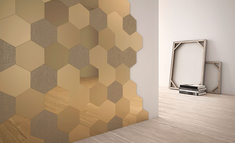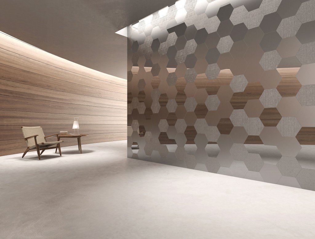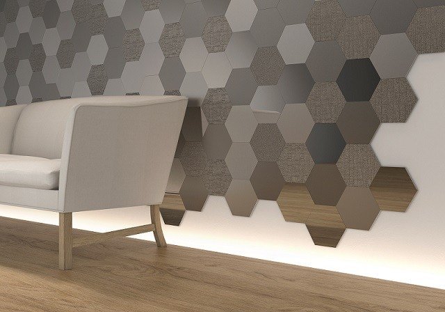 レージェンシーが取り扱うスペイン製の装飾タイルの中でも、シンプルなデザインながら、ヘキサゴン型の6角形のタイルデザインで、人々を魅了するエレガントな壁面を演出する装飾タイル「Geom」。