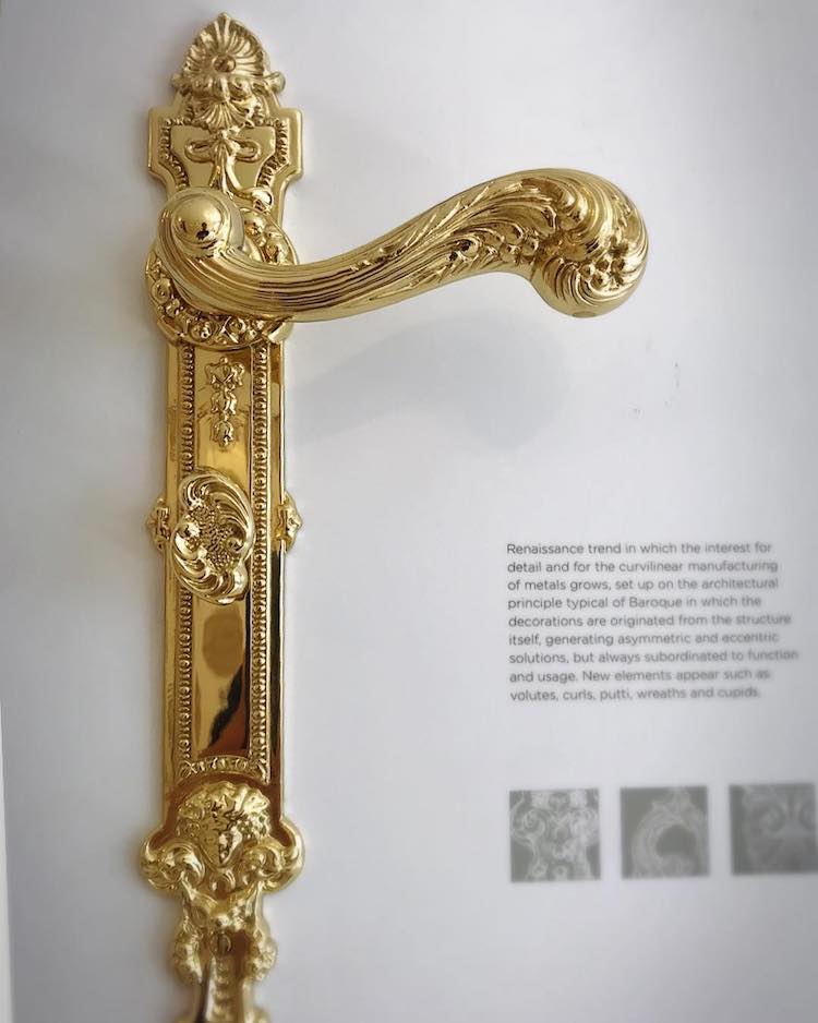 160年以上の歴史を持ち、イタリアらしい繊細かつ大胆なデザインで歴史的建造物をはじめ、世界の有名建築を美しく引き立て空間を演出する「エンリコカッシーナ」のドアレバーハンドル。