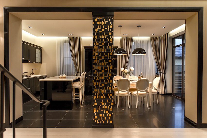 装飾タイル「Shapes Origami Black / Origami Gold」施工例