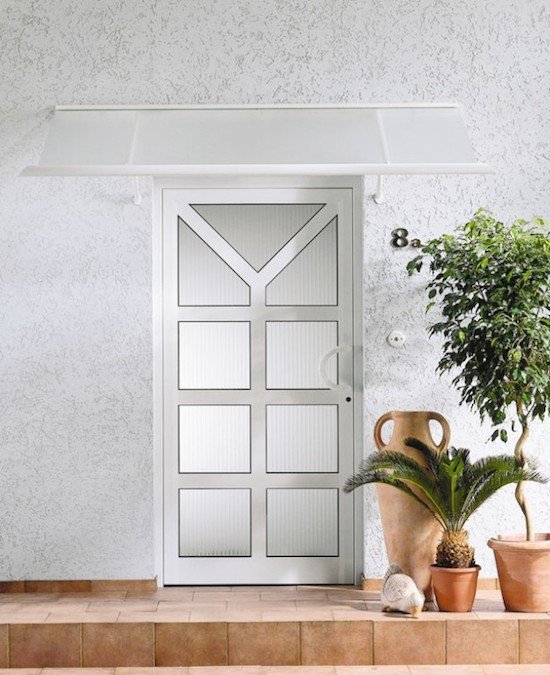 デザイン性の高いスチール製のキャノピーが、機能としてはもちろん、ドアまわりをモダンに演出します。
