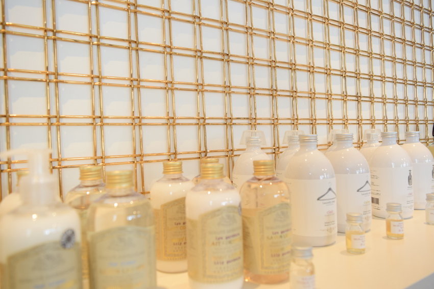 それではメタルメッシュパネル「M22-83 Brass」をディスプレイ什器装飾として使用した事例をご紹介したいと思います。