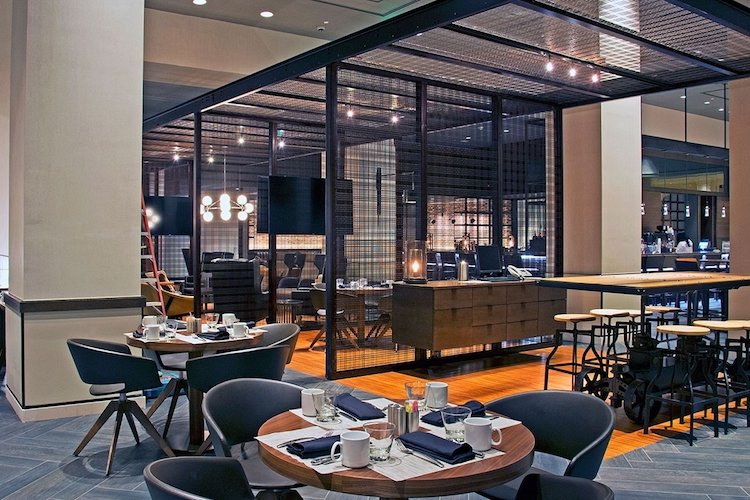 メタルメッシュパネルを使用することによって、パネルの力強さと輝きが空間をエレガントに演出しながら、空間の視界を狭めることなく、広がりある空間を創造してくれるのが魅力的。