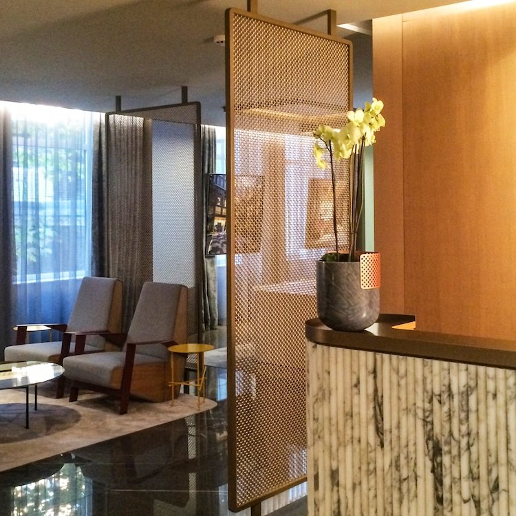 様々なシーンで使用することが可能なメタルメッシュパネルですが、今回はホテル内のパーテーションとしてメタルメッシュパネルを使用した事例をご紹介したいと思います。