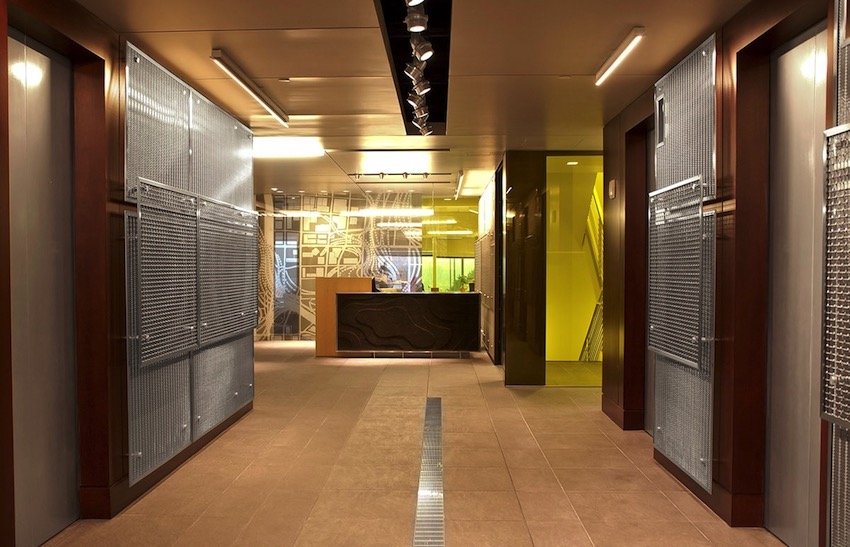 さまざまな用途で使用することが可能なメタルメッシュパネルですが、今回はメタルメッシュパネルをエレベーター装飾に使用した施工例をいくつかご紹介したいと思います。