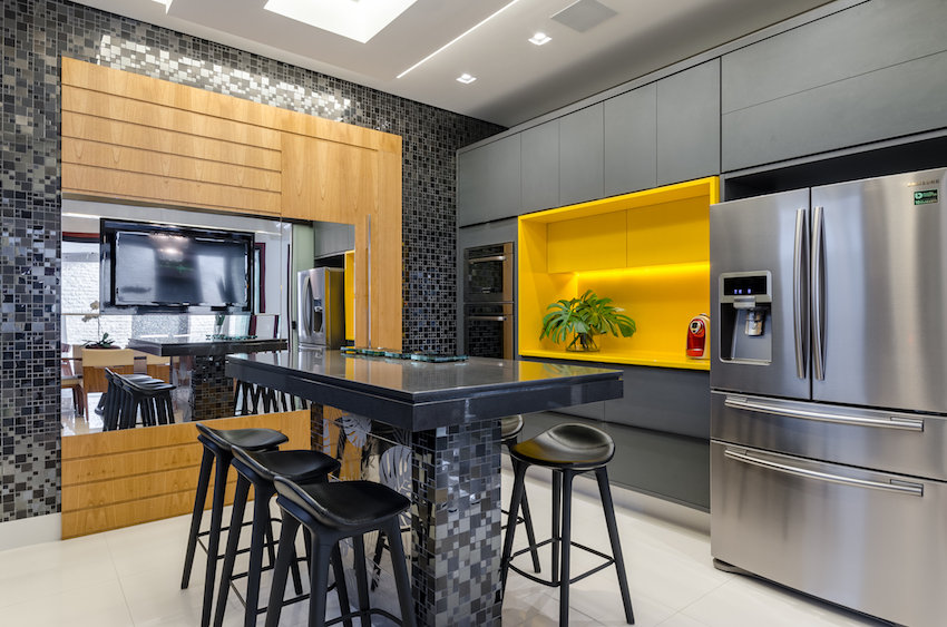 装飾タイル「Cosmos Gold」カウンター腰装飾施工例