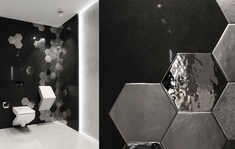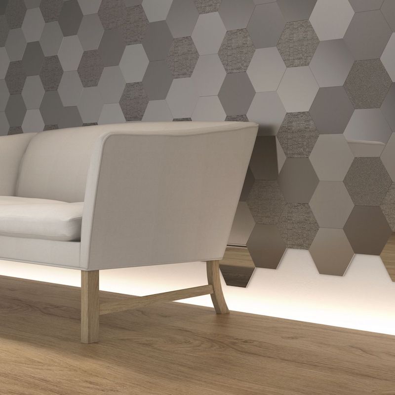レージェンシーが取り扱うスペイン製の装飾タイルの中でも、シンプルなデザインながら、ヘキサゴン型の6角形のタイルデザインで、人々を魅了するエレガントな壁面を演出する装飾タイル「Geom」。