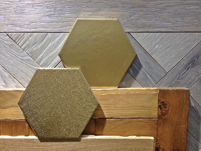 今回、装飾タイル「Majestic」の「Decor Nacar」と「Decor Gold」が使用されています。