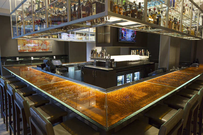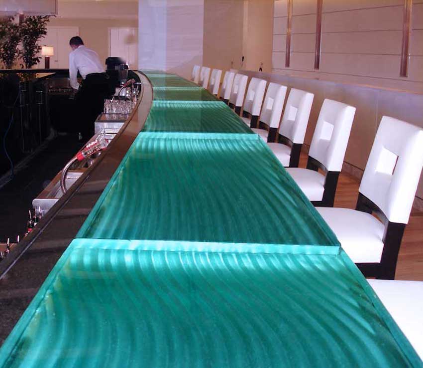 今回は、装飾ガラスをバーカウンタートップとして使用した事例をご紹介したいと思います。