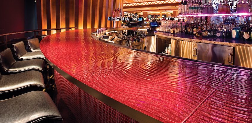 これまで、装飾ガラス「ヘビー」をレストランやホテル、バーなどのパブリックスペースでカウンタートップとして使用した施工例をお伝えしてきました。