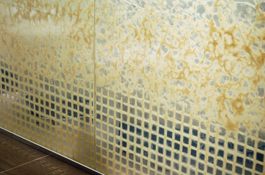 そんな今まで使用出来なかった水廻りでの使用、清掃の際の水拭きなどを行うことができるのが「和紙ラミネートガラス」です。