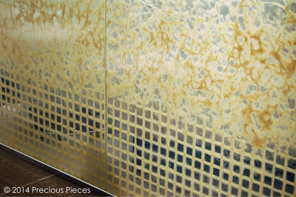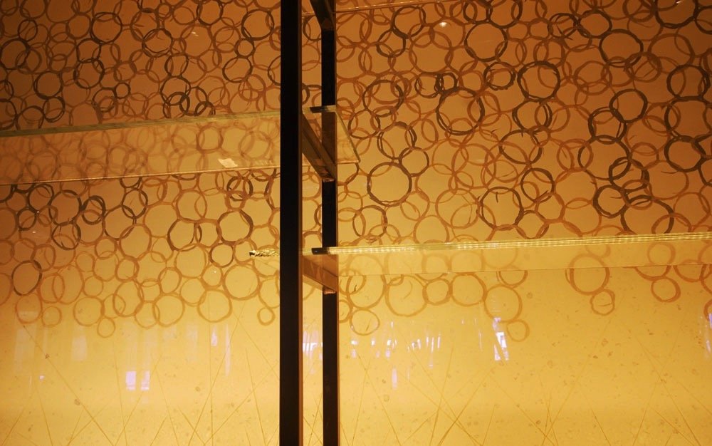 空間演出の幅を格段に広げる装飾ガラスは、装飾性が一番求められる壁面、パーテーションを始め、フロア、階段ステップにも使用できるほか、カウンタートップ、サイネージ(看板)、照明器具など、あらゆる空間、場所に使用できます。