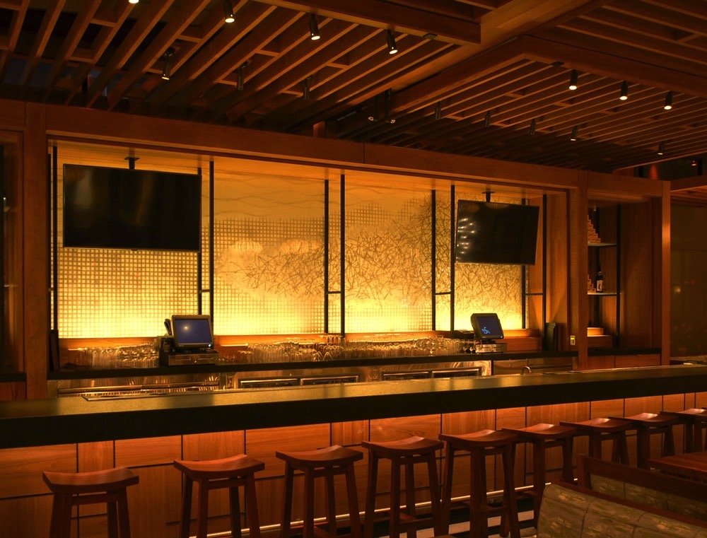 家具や什器、照明など応用範囲の広い建材ですが、今回はレストランやバーなどの店舗で使用された空間演出をご紹介したいと思います。