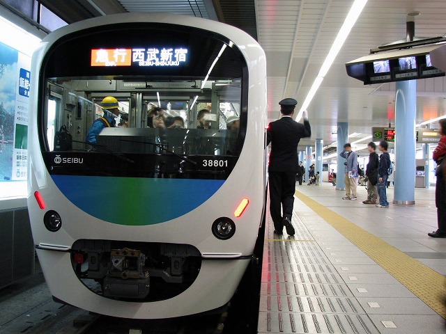 鷺ノ宮で目の前の座席が空いたので座ってみると、高速運転でも静かな走行音と柔らかく包みこむような座り心地でウトウトとしてしまいました。これなら長時間の乗車でも苦にならない印象です。眠気覚ましに見ていたLCDを見ていると、左画面は西武グループのPR映像や30000系の製造を担当した日立製作所のCM等が流れ、右画面は西武オリジナルデザインの案内表示を表示。案内表示は見やすいデザインに仕上がり、思わず感心したりするものばかりです。