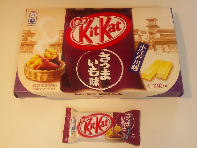 このキットカットさつまいも味は、一袋に入る大きさがコンビニやスーパーなどで見かけるキットカットよりは小さいながらも、さつまいもや川越の蔵作りの街並が描かれた外箱が大きい点が特徴です。今回購入した虎屋商事の係員に聞いた所、キットカットさつまいも味は、土産物店など埼玉県内の限定した場所でしか販売していない模様です。