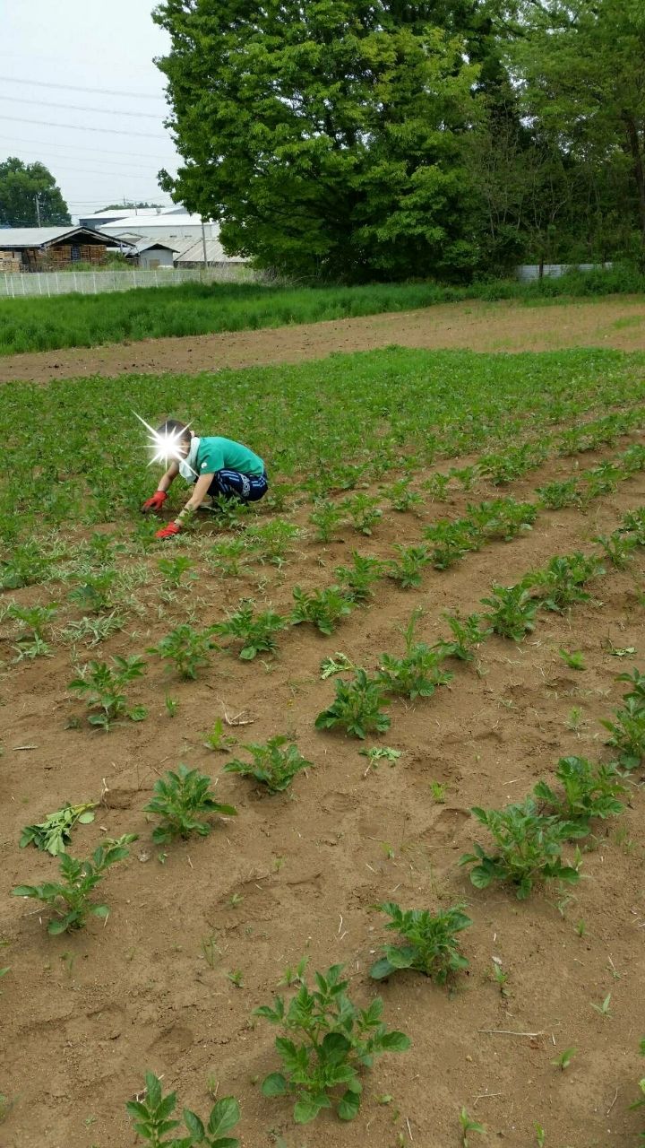 じゃがいもの芽かきと土寄せもしました