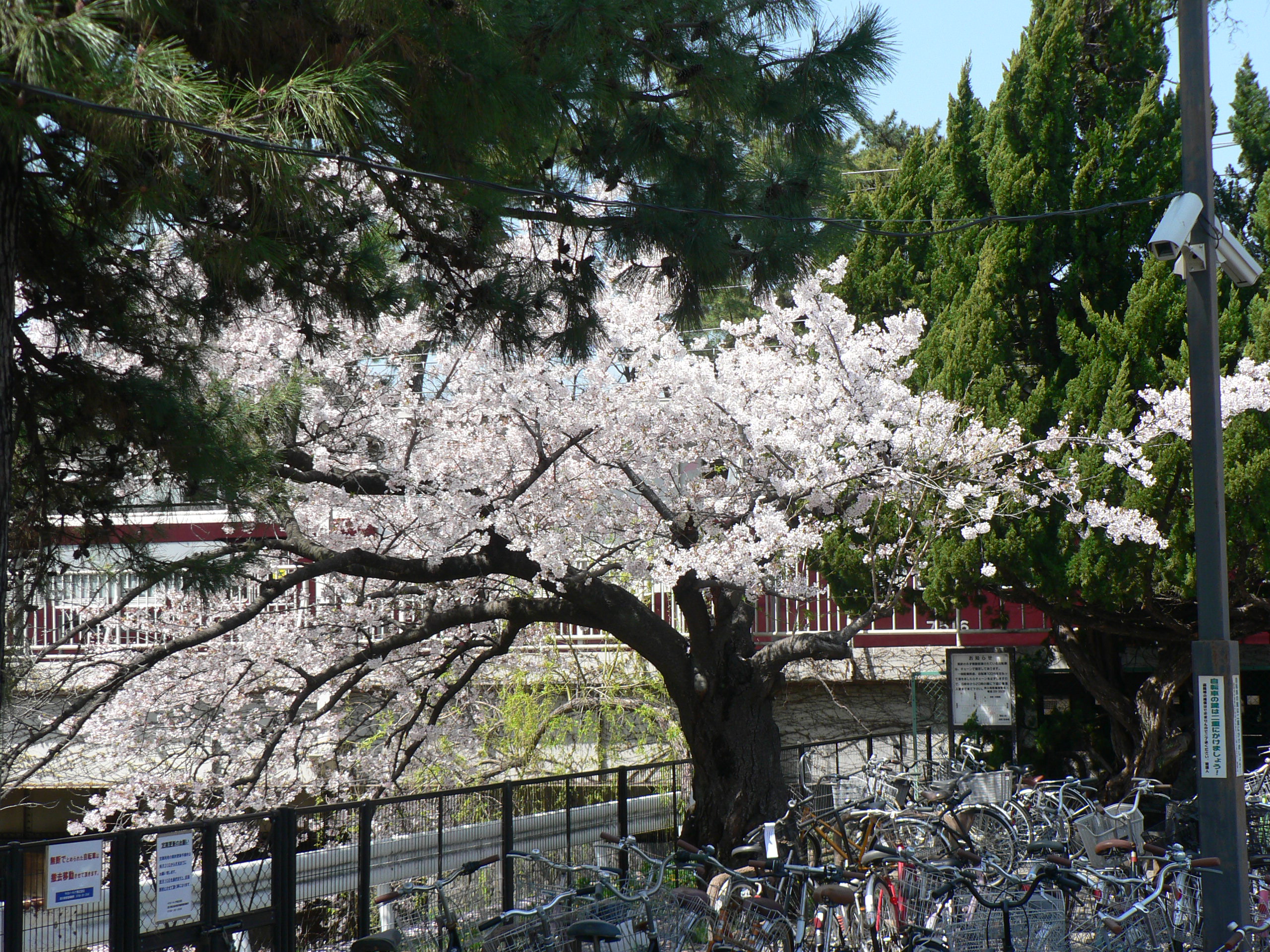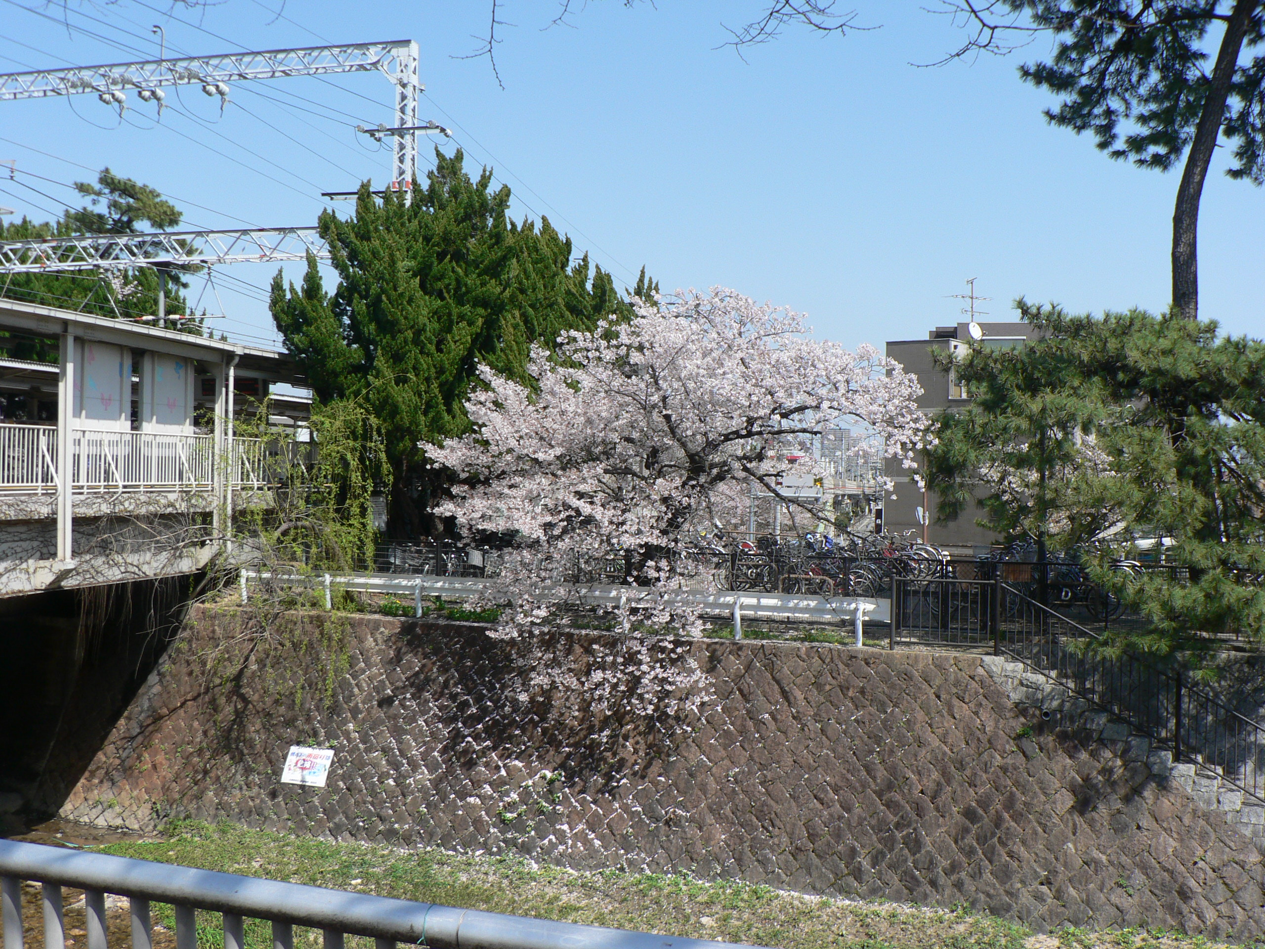 川を渡って自転車置き場の桜です。