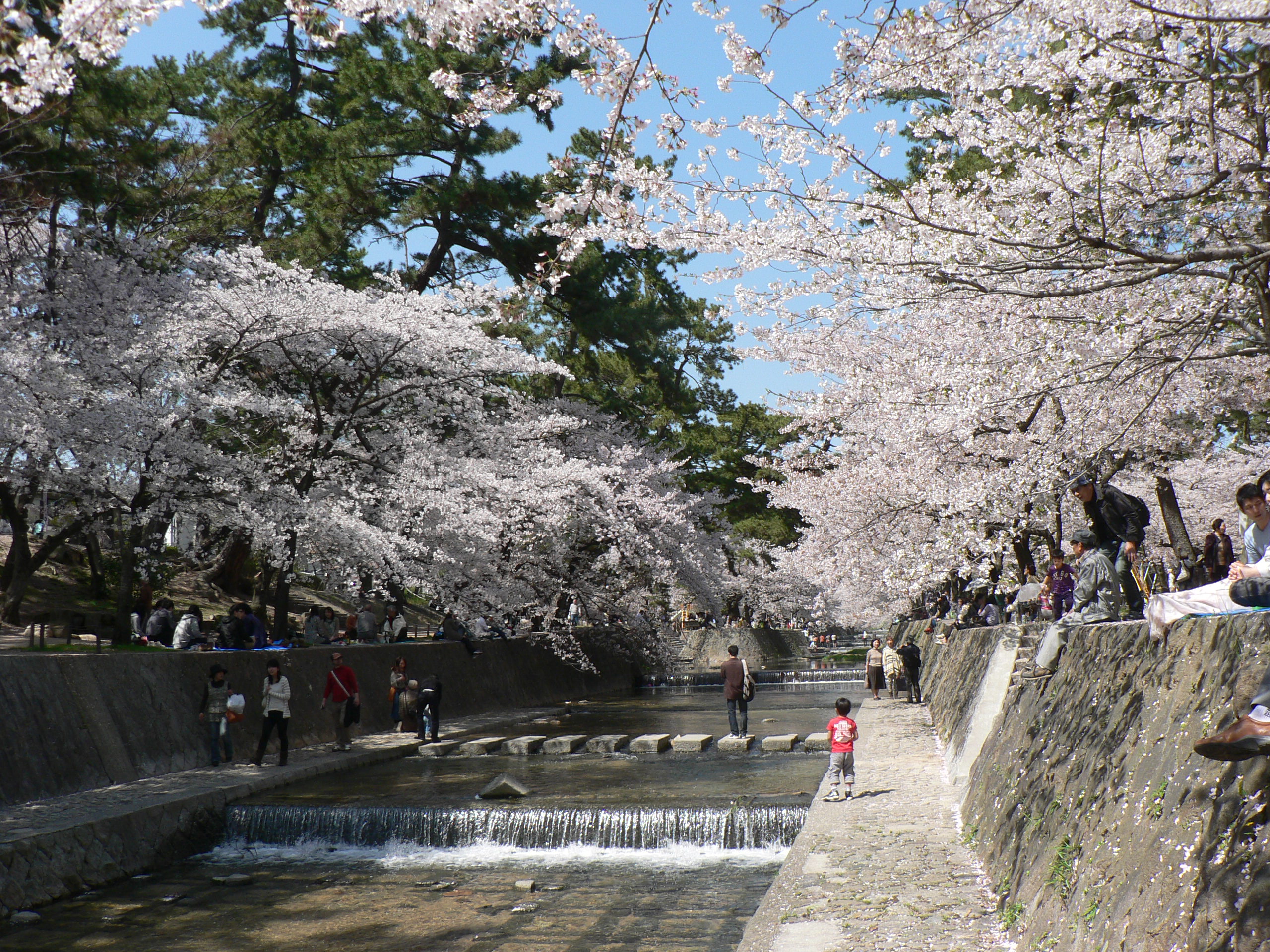 満開の夙川に花見に行きました。