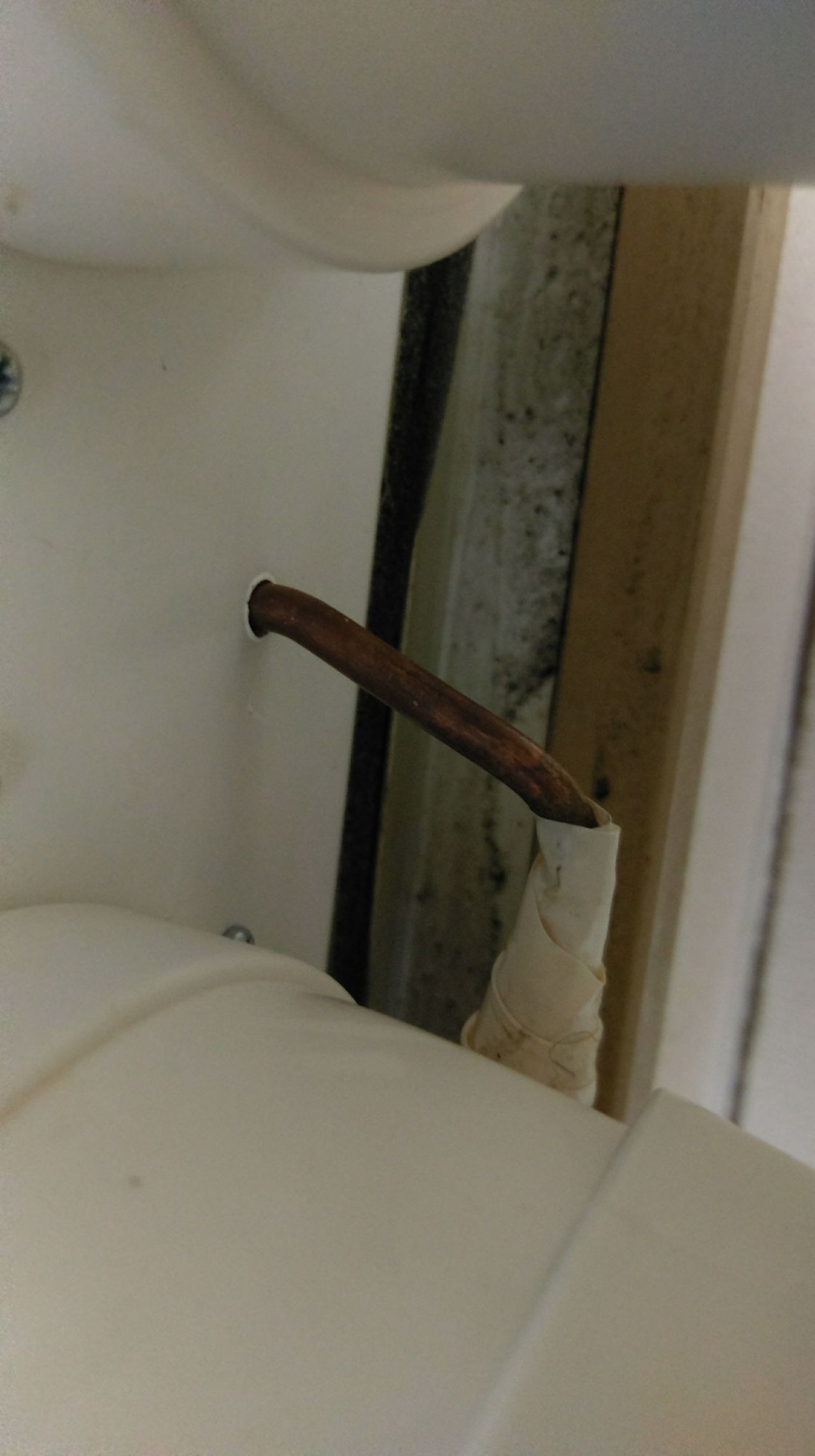 防水テープでホースとパイプを巻いています。