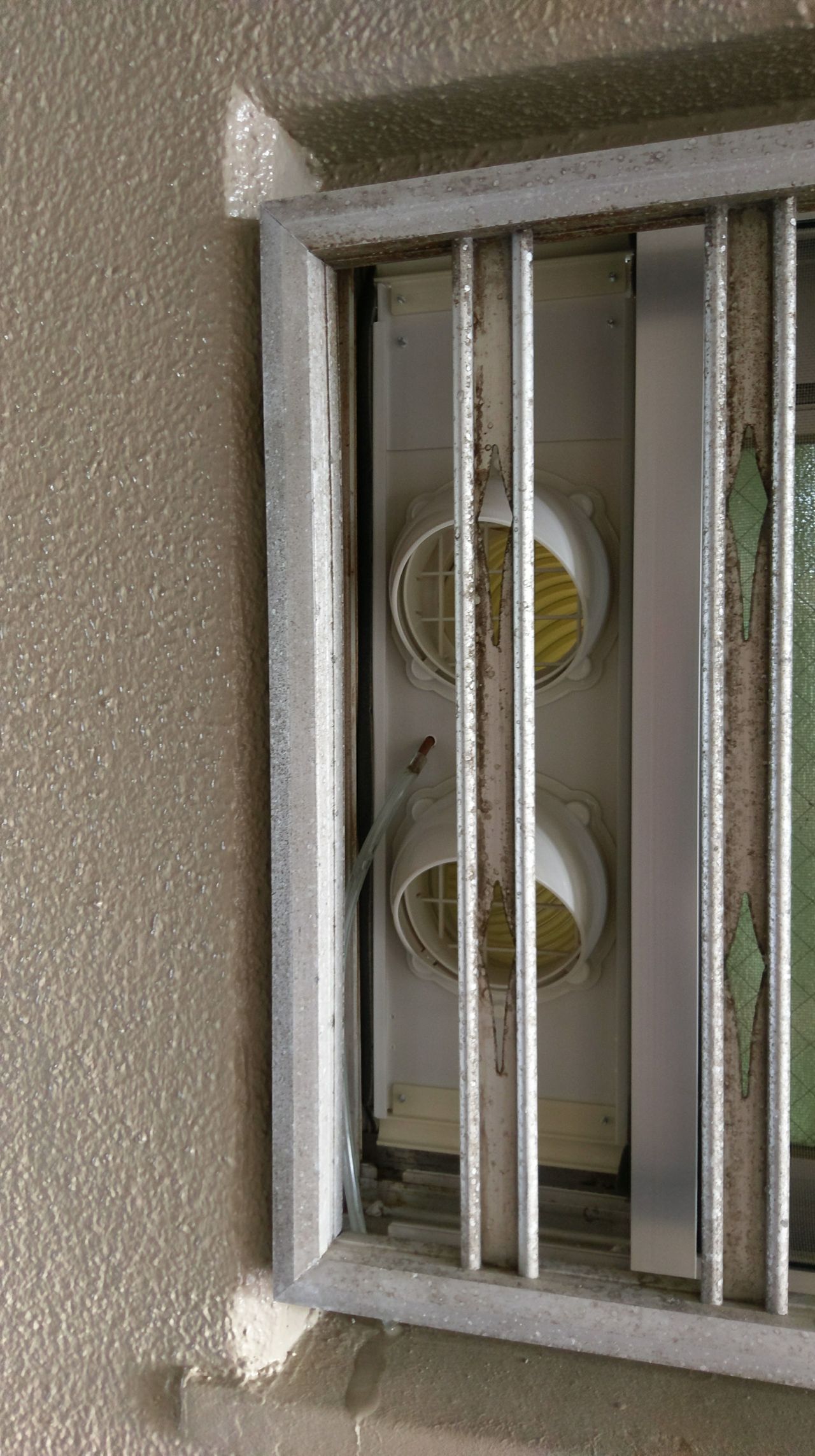 マンションの高い小さい窓でエアコン。