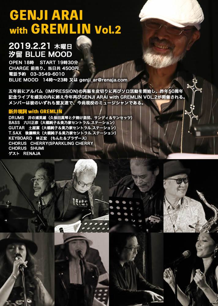 2月21日(木)GENJI ARAI with Gremlin Vol.2 at Blue Mood(コーラス、ゲスト)