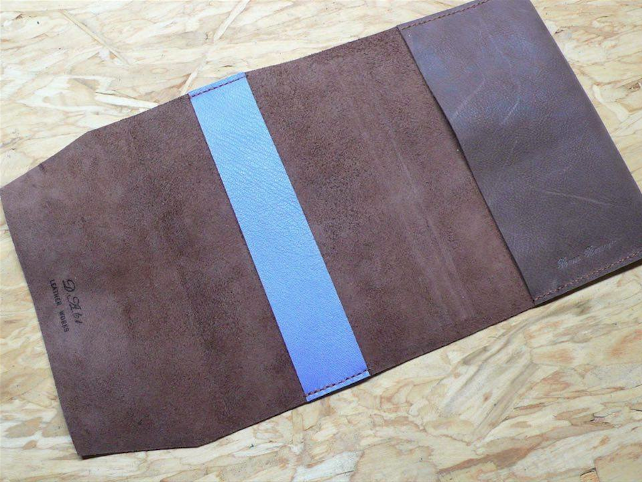 ※裏表紙内側の折込の革はパープルを使用。