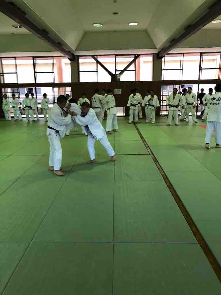 写真は一道館田代道場(東京都)出身の白石先輩(2年生)と大暉。沢山稽古をつけていただきました。