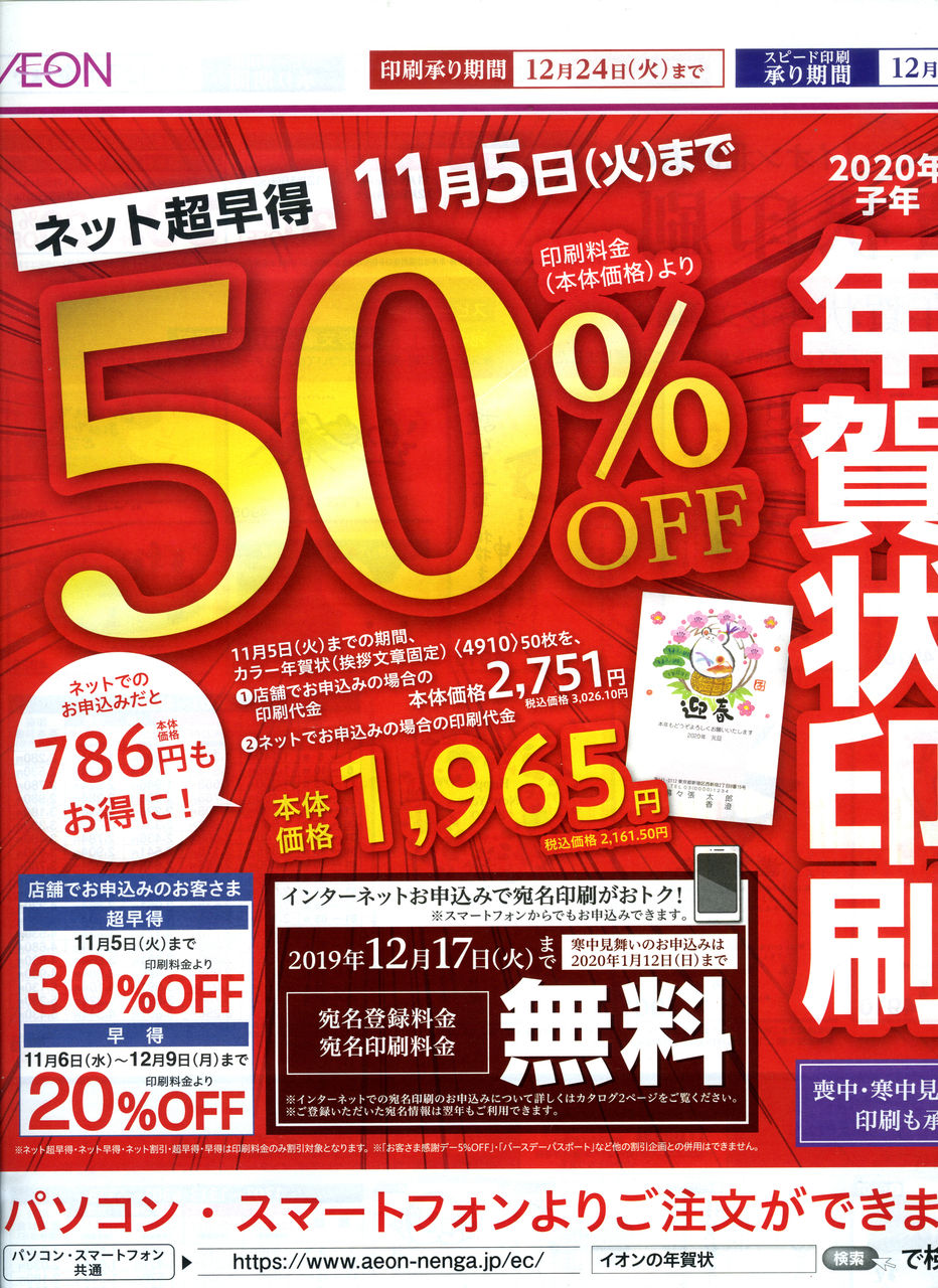 この時期はスーパーやコンビニでも年賀状の印刷を承りますの告知ポスター