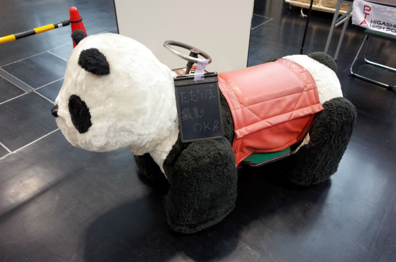 なんだこれは(驚愕。まさかのパンダカー……! 「東方深秘録発表記念特別企画」として「パンダのりば」なるものが設置されておりました。なお「2分間で200円 2コイン!宇佐見菫子コスの方は無料でダッシュ+A可能!」だそうで(汗)